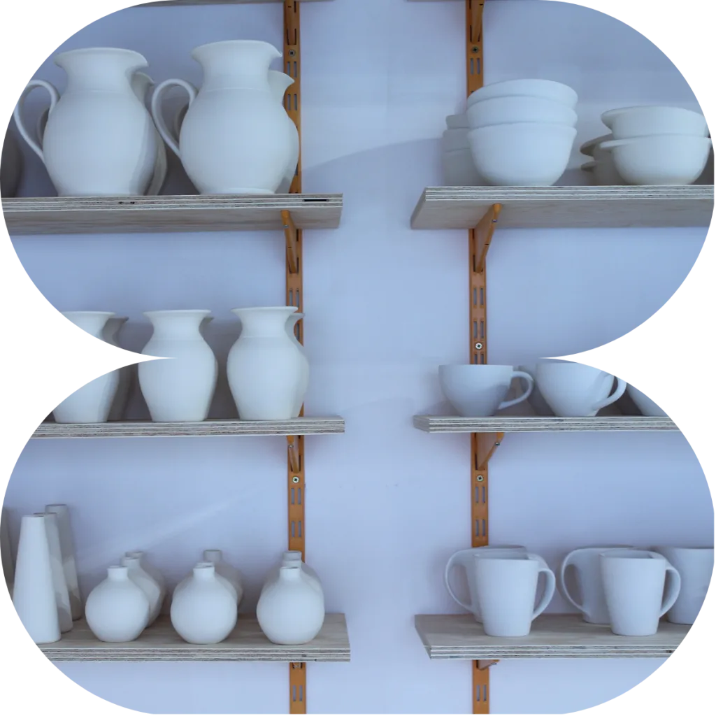 Nous proposons une large sélection de céramiques : tasses, bols, assiettes, vases, petites figurines…