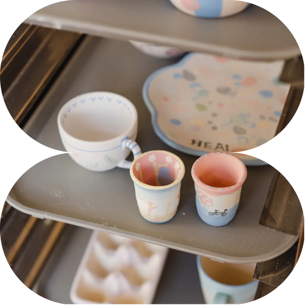 Chaque pièce a son prix affiché : il inclut tout le matériel, les peintur et la cuisson.